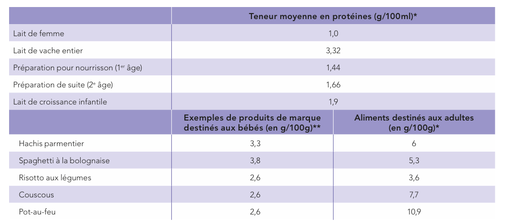En France et en Europe, les aliments de l’enfance sont élaborés par des industriels soumis aux réglementations européennes strictes ainsi qu’à des bonnes pratiques de fabrication. De ce fait les taux protéiques sont surveillés pour assurer le bon développement de l’enfant tout en les préservant d’excès.