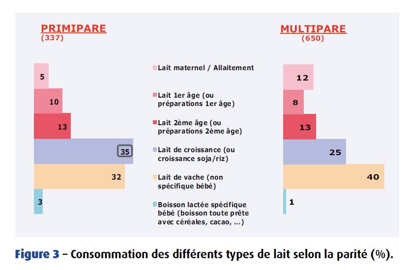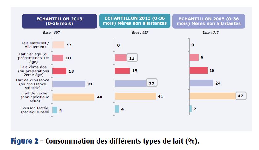 - Si on constate une augmentation de consommation du lait de croissance, le lait de vache reste trop consommé (40 % des enfants du panel).