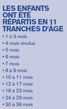 - Les bébés âgés de 15 jours à moins de 36 mois, à l’exclusion des enfants malades (maladie chronique ou aiguë), ayant un poids de naissance < 2,5 kg et éventuellement scolarisés.