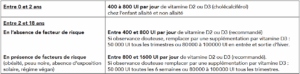 Recommandations actuelles des apports en vitamine D ([1], [2])