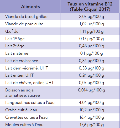 Déjà dans une étude parue en 1989, les auteurs avaient dosé la vitamine B12 chez 47 nourrissons âgés de 10 à 20 mois et nourris avec une diète macrobiotique. Ces enfants, de mères veganes, avaient été allaités de façon exclusive entre 4 et 8 mois. Quarante-cinq pour cent d’entre eux étaient carencés en B12 avec un taux d’hémoglobine plus faible que chez des nourrissons témoins et un volume globulaire moyen plus élevé. Dans des études publiées plus récentes, notamment en France, de nombreux cas, de carences profondes ont été décrits chez des nourrissons allaités par des mères carencées, les signes débutant alors le plus souvent entre 3 et 6 mois. Le tableau clinique associe généralement un retard/régression psychomotrice, dénutrition et une anémie mégaloblastique.