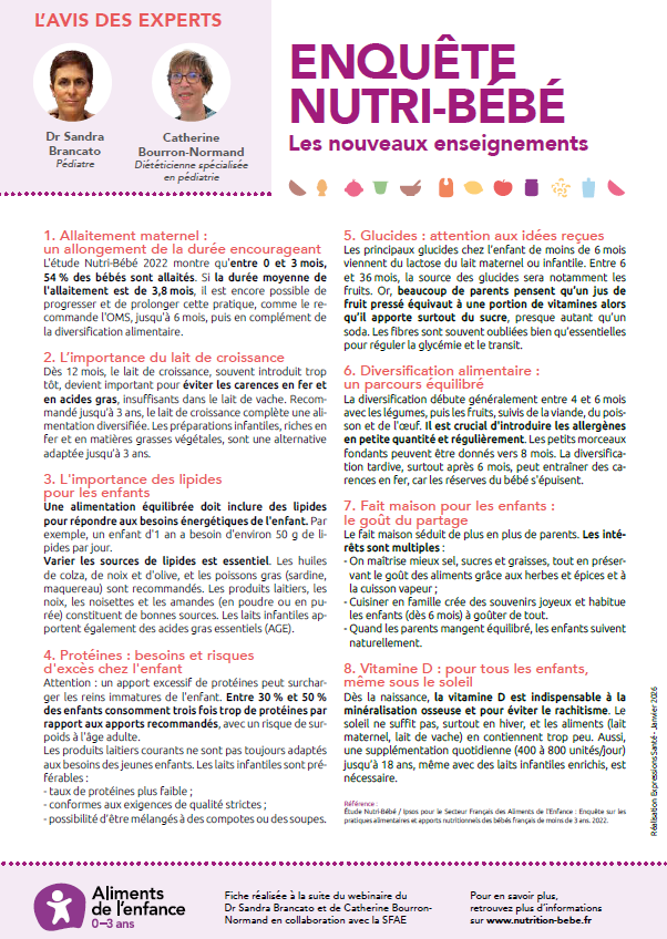 Découvrez ou re-découvrez le webinar sur l’étude Nutri-Bébé, animé par Dr Sandra Brancato et Catherine Bourron-Normand.